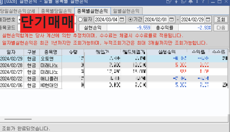 그렇다면 단기매매, 스윙매매 모두 수익이 좋아야 되는데 과연... 그럴까요?