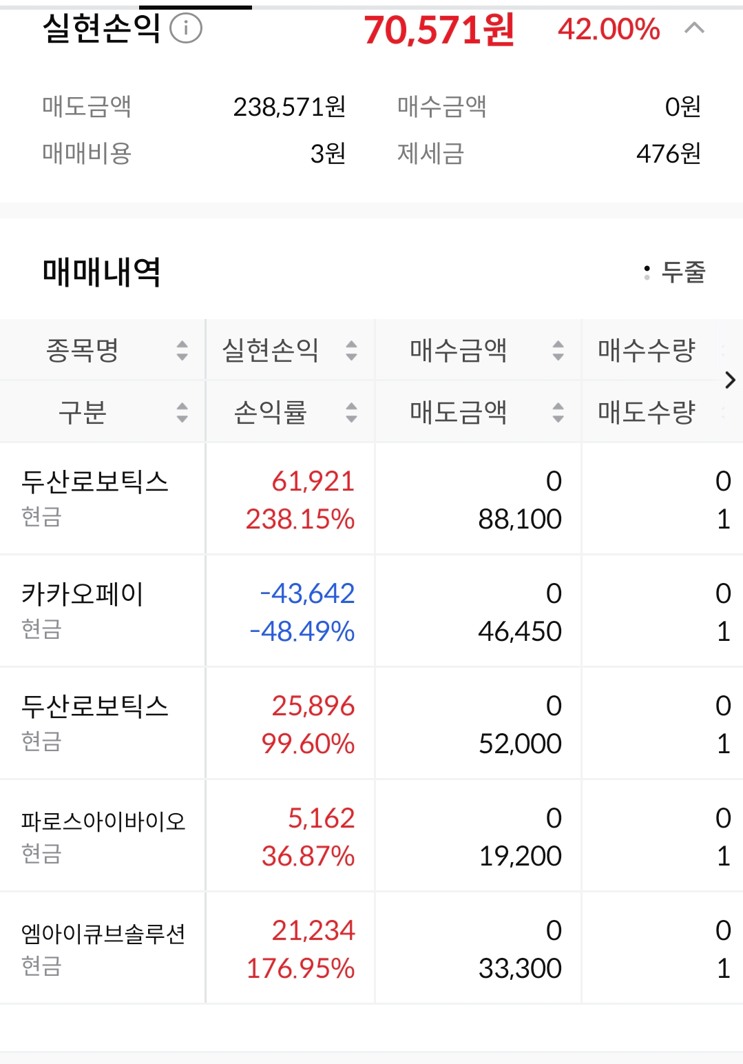 카카오페이는 이전에 했었지만 팔지 않고 놔뒀던 것입니다.(지금은 -50%라니 ㅠㅠㅠ)