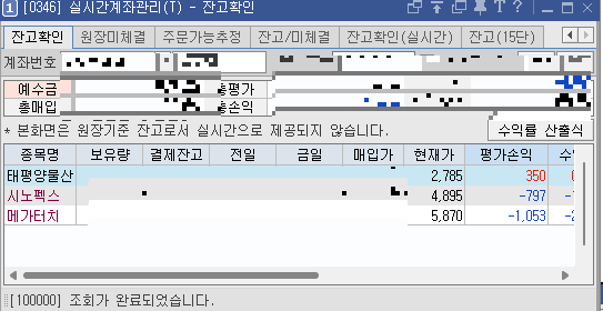 3종목 다 정해진 매수 매도 시나리오를 세웠고, 그중 시노펙스는 내일 오전장 초반에 정리 할 것이다. 그것이 수익이든 손절이든. (사실 시노펙스는 하락도 상승도 큰 움직임이 없어 관망을 해버린 것이다.) 태평양물산과 메가터치는 이제 나의 투자 법칙에 따라서 수익이 될지 손절이 될지는 모르겠다. |