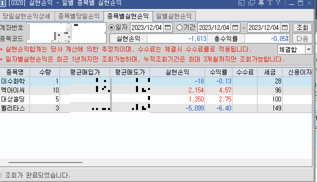 오늘의 투자 기법은 ONE DAY계좌에서 손실과 수익이 상존합니다.