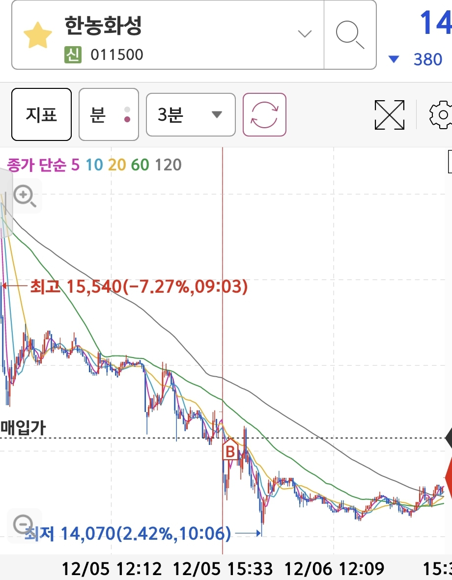 한농화성:  매수 기준에 부합하여 매수,(2차 매수를 진행하지 않음)