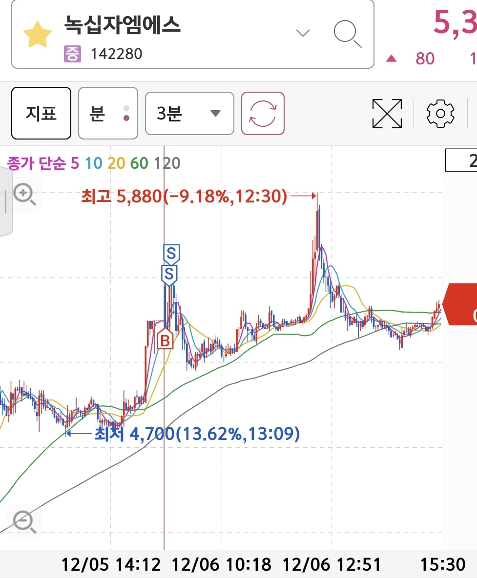 녹십자엠에스: 매수 기준에 왔고, 정해진 원칙에 맞게 매도를 하여 수익!