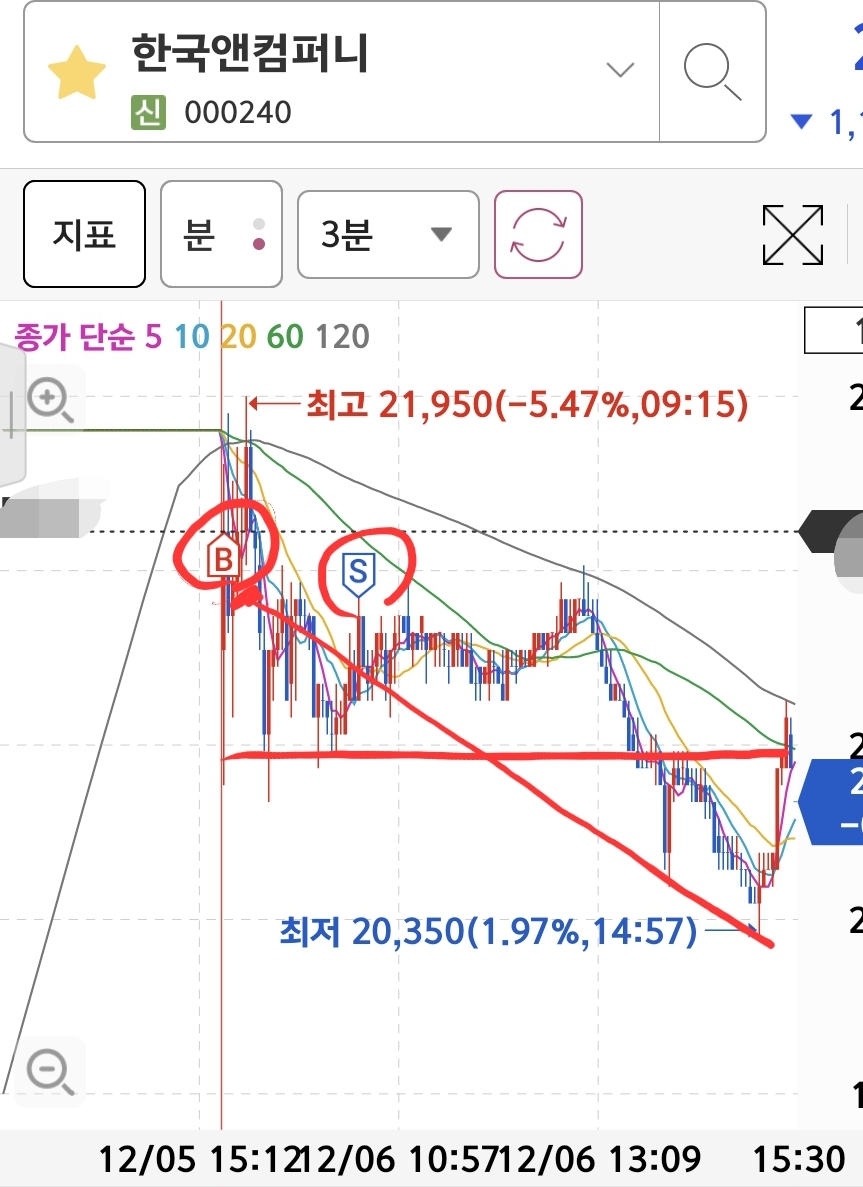 한국앤컴퍼니: 상단에서 매수하였다. 보수적인 성향에 안맞게 뇌동매수를 하였다