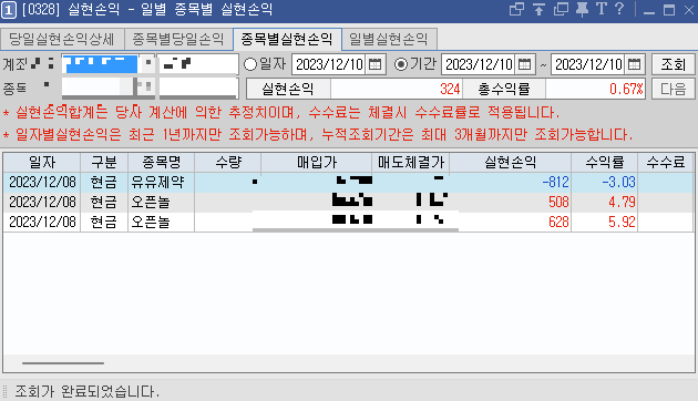 2023년. 12월 8일(금) 단기 매매 일지를 공유합니다.