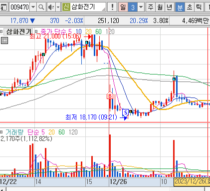 삼화전기: 시나리오 맞는 매수, 매수가 대비 5%하락에 따른 손절