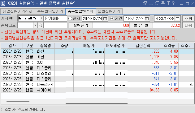 2023년. 12월 28일(목) 단기 매매 일지를 공유합니다.
