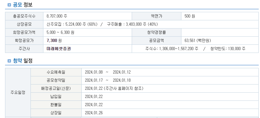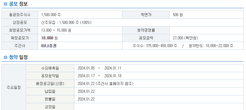 다음은 공모주 청약의 정보를 간략하게 담았습니다.​