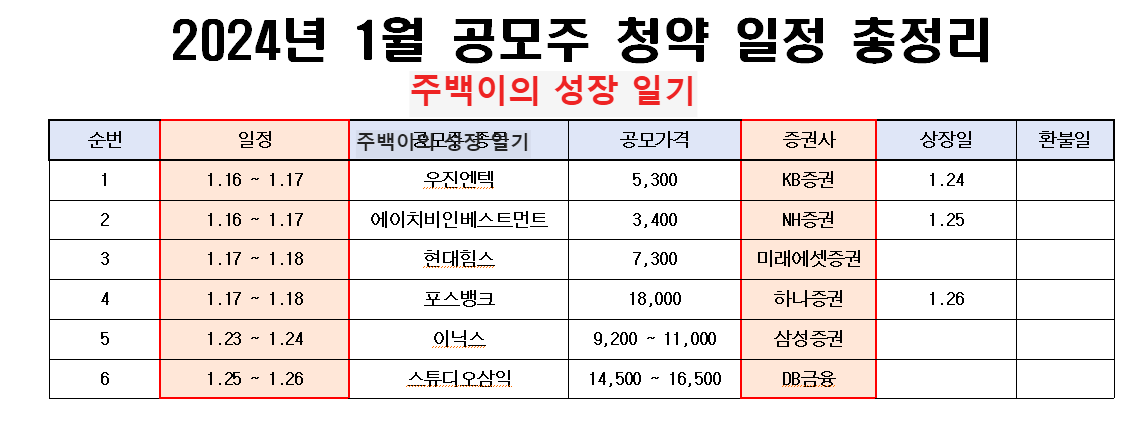 2024년 1월 공모주 정보 모음