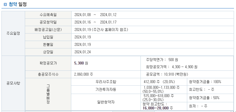 다음은 공모주 청약의 정보를 간략하게 담았습니다.