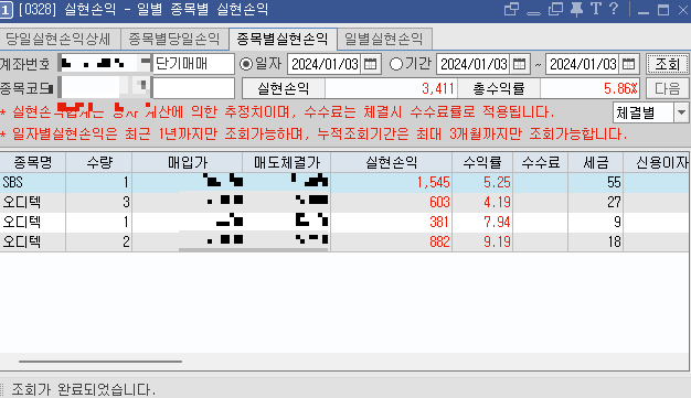 2024년. 1월 2일(화) / 3(수) 단기 매매 일지를 공유합니다.