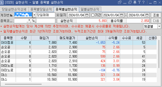 2024년. 1월 4일(목) 단기 매매 일지를 공유합니다.