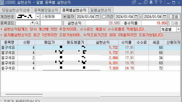 2024년 1월 4일 주식매매일지(단기투자, 장기투자, 수익 인증)