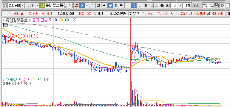 수익 롯데정보통신(2%) 전일 오후장에 매수 했던 것이 금일 오전장 반등에 수익을 냈다.