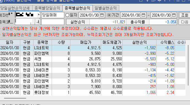2024. 1. 30.(화) 주식 매매일지(피드백, 원칙과 기준)