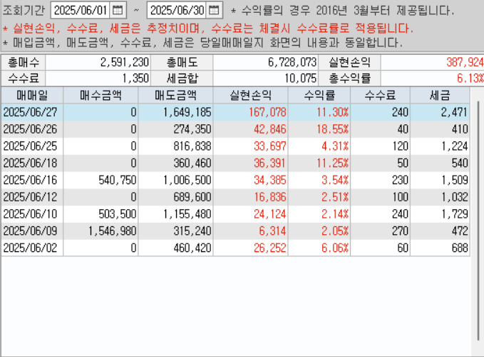 6월은 보유한 스윙 매매주 대부분이 수익을 실현하였고,