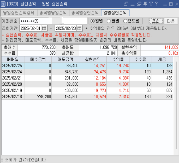 25년 2월, 매매를 많이 하지 못해서, 수익인증이 역대 최저가 되었네요!~~
